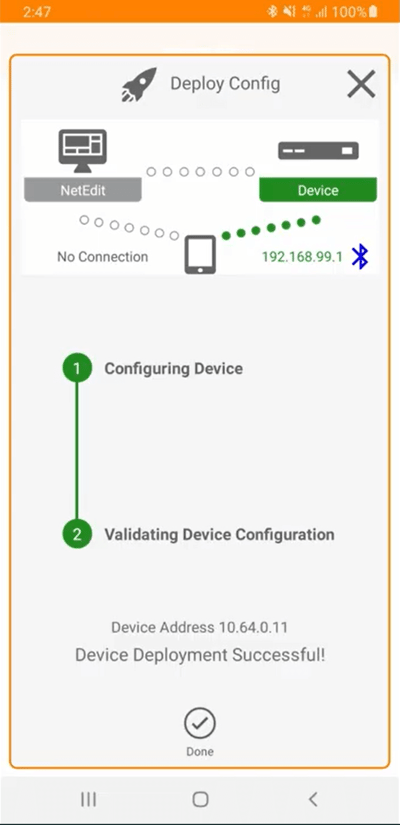 Aruba CX Mobile App will generate a copy of the new config which is ready for deployment. Review it and click on Deploy.