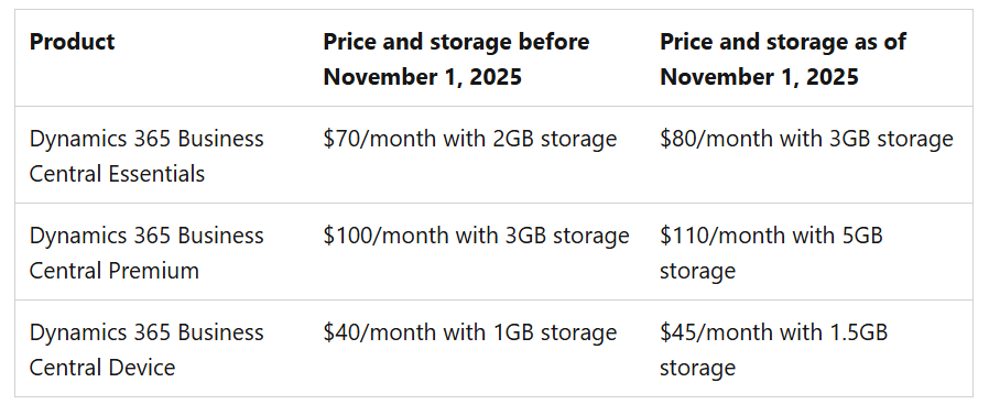 Microsoft has announced a pricing update for Dynamics 365 Business Central, effective November 2025.